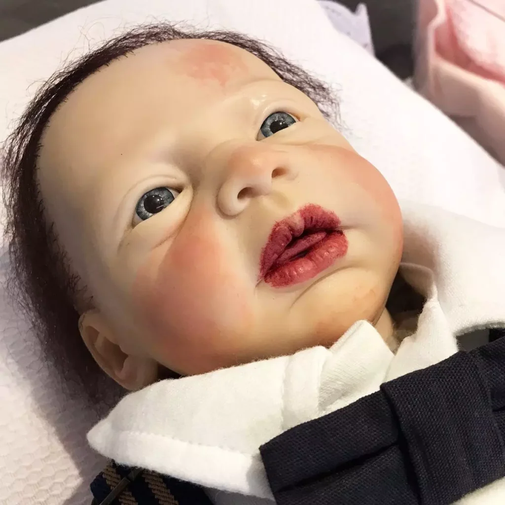 Observe se a boneca tem veias aparentes, cílios aplicados, unhas pintadas, dobrinhas e expressão facial delicada. Bonecas “genéricas” não possuem esses detalhes.